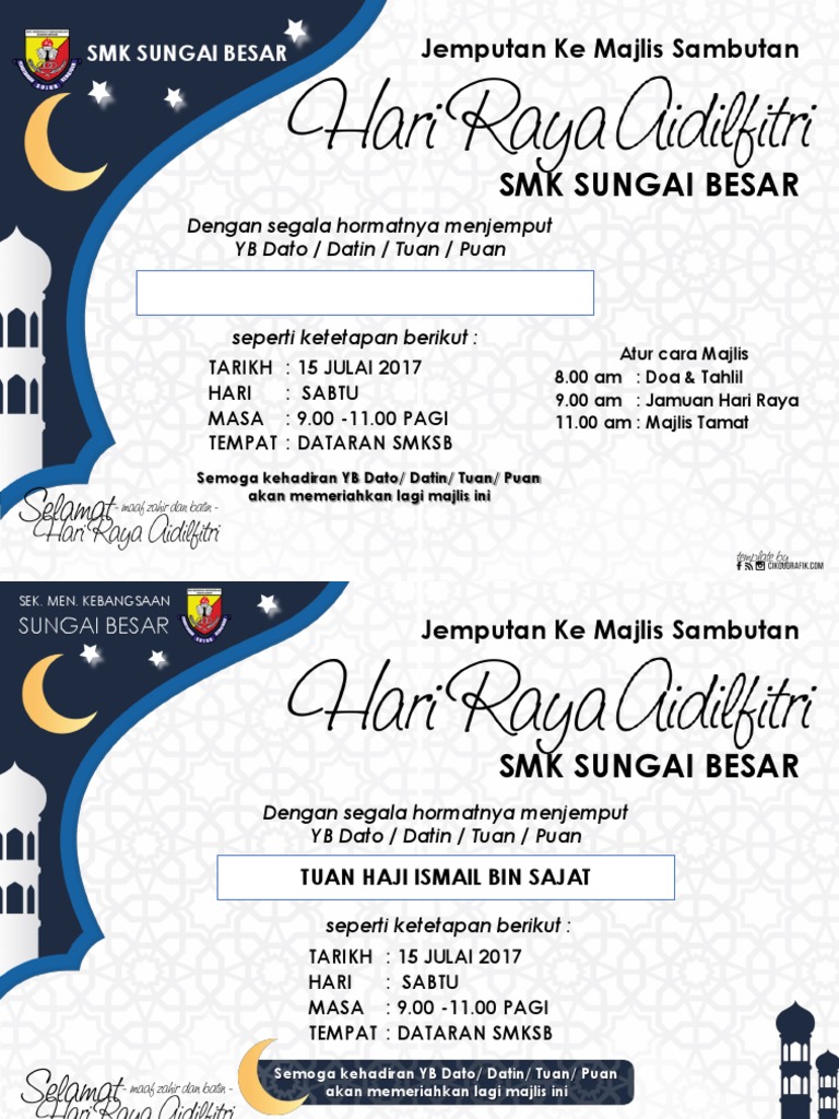 Hari raya dalam agama islam. Majlis aqiqah & kesyukuran dengan rasa penuh kesyukuran kesyukuran ke hadrat allah swt, dengan rasa hormatnya kami. 48 best projects to try images. Semoga dengan kehadiran tuan/puan/dato/datindapat memeriahkan lagi majlis ini.terima kasih. More than 3 million png and graphics resource at pngtree. Jamuan raya kesba & majlis penyampaian cenderamata 2017. Contoh design kad jemputan aqiqah games collection, kad jemputan pages 1 1 text version anyflip, kad jemputan kawin luar handsomeboy 21 flickr, awin design kad design kad jemputan persaraan guru besar docx document. Download hd black and white picture frame brand pattern contoh. Kad raya on the app store. Bertempat di bilik gerakan , sk kuala muda, 13110 penaga, spu penang. Image result for contoh kad jemputan ke majlis jamuan hari. Buka canva dan pilih jenis design kad jemputan. Hari raya aidilfitri greeting card template design.