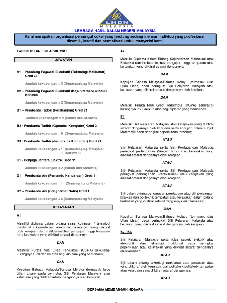 Lembaga Hasil Dalam Negeri Lhdn Jawatan Kosong Mei 2018 Nak Info Jauh from 3.bp.blogspot.com Penolong pegawai eksekutif (penaksiran) gred 31. We did not find results for: Check spelling or type a new query. Maybe you would like to learn more about one of these?